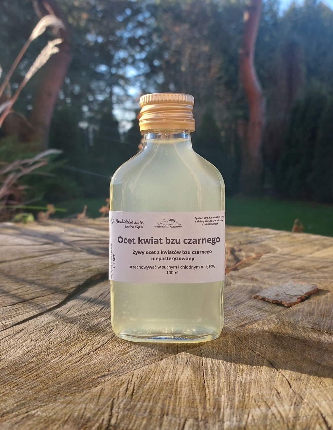 Ocet naturalny, żywy, z kwiatów czarnego bzu
