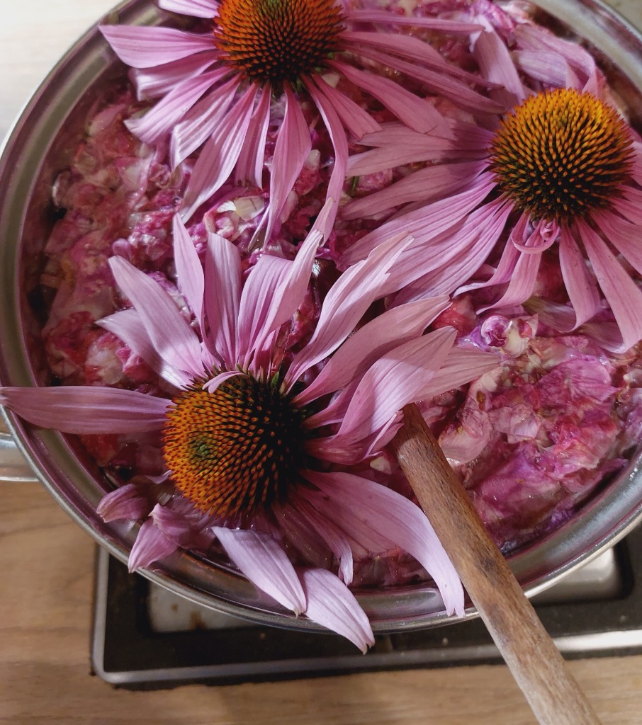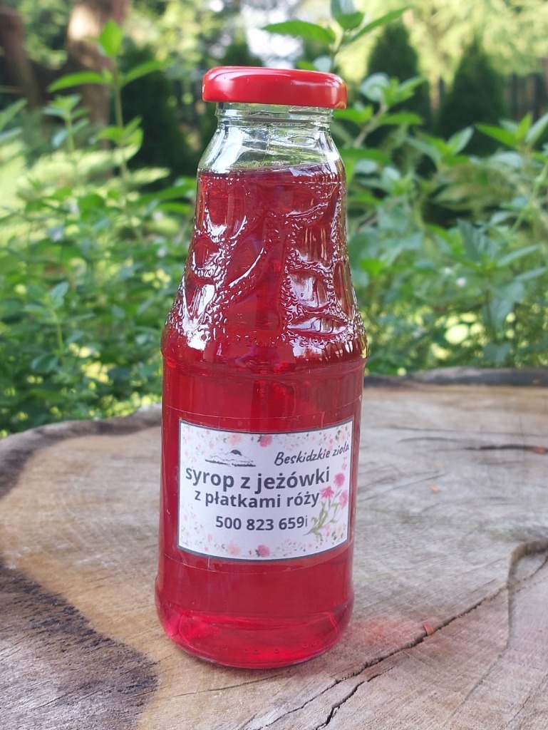 Skład: kwiat jeżówki, płatki róży, cukier, sok z cytryny.